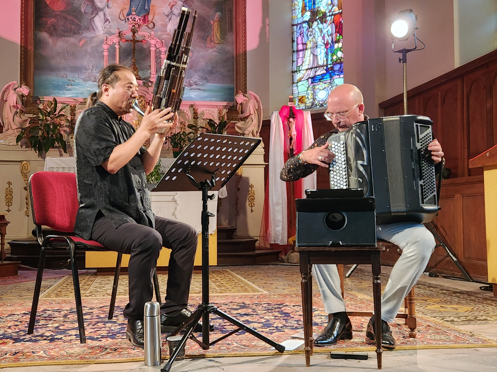 Que ce soit au cours des rencontres toujours passionnantes pour les clés qu’elles permettent d’avoir ou au cours des concerts du jour, chacun a su nous intéresser, nous passionner, nous cultiver autour de son instrument et à travers lui de sa culture. A ce titre, on retiendra le concert donné par Pascal CONTET et WU WEI avec une alternance de classiques (BACH, MONTEVERDI, VIVALDI) et d’improvisations toutes plus incroyables les unes que les autres. Il faut dire que l’homme compte sur sa carte de visite des collaborations avec toutes les plus prestigieuses formations (Philarmonique de Berlin, Philarmonique de Los Angeles, BBC Symphony Orchestra, BBC Scottish Symphony Orchestra, Royal Stockholm Philharmonic Orchestra, Tokyo Symphony Orchestra, Orchestre philharmonique de Radio France, Helsinki Philharmonic Orchestra etc…) Quel spectacle, quelle musique !