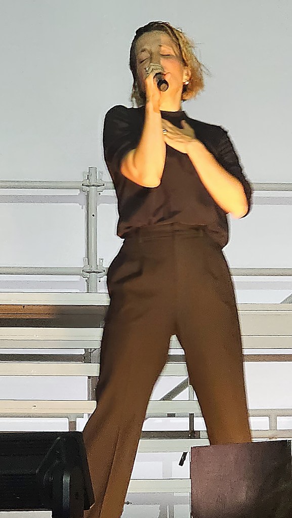 On danse aussi sur certains titres, l’ensemble de ce concert à la fois pop et musique électronique n’étant pas sans avoir des airs de Christine and the Queen. Tout juste pourra-t-on regretter un léger abus de réverb mais le spectacle est beau et efficace.