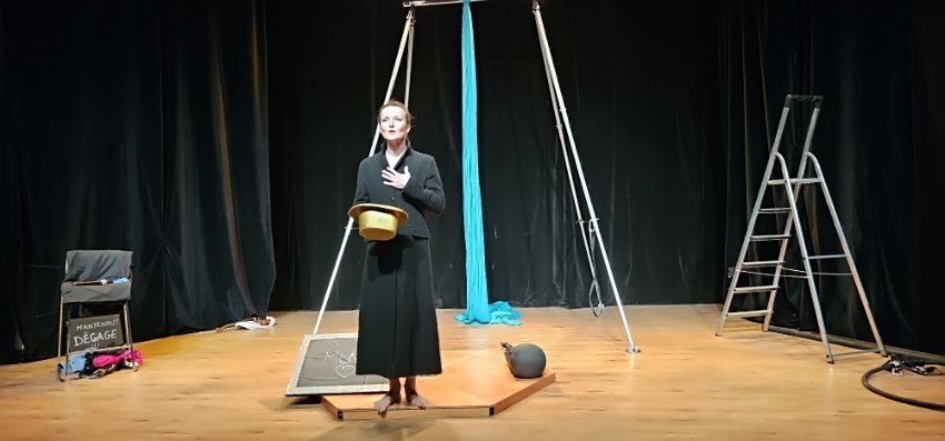 Elle, c’est Clémence PEYRON. Et en ajoutant à toutes les disciplines précédemment évoquées un certain talent de conteuse parfois à la limite du stand-up (c’est un compliment), elle nous raconte sa vie d’artiste en répétition, en voyage avec tout son barda, pendant ou après le spectacle (mention spéciale au massage en Chine).