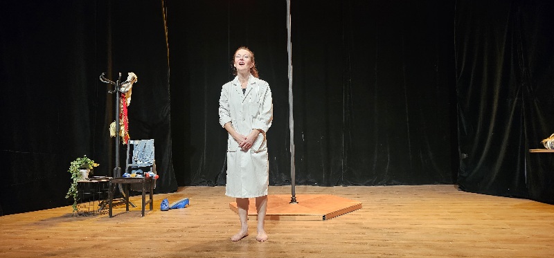 Même si elle nous avertit d’entrée qu’elle est plusieurs dans sa tête (on peut confirmer), la ligne directrice est fluide et claire : comment partie pour être vétérinaire j’en arrive à être artiste ! C’est bien écrit. Point de divagation entre plusieurs disciplines dans ce spectacle puisque la barre n’intervient qu’en toute fin de spectacle mais un seule en scène drôle et super-efficace. Trash parfois puisque l’humour noir ne lui est pas étranger.