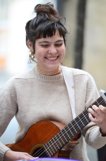 Bien entendu, tout ne va pas se faire tout de suite, la demoiselle en est bien consciente. Il y a donc de fortes chances de la rencontrer encore quelques fois – intermittence oblige – avec les Sopali Spiez, avec Tutti Quanti (le groupe de son père), avec l’Ajamo (l’Afro JAM Orchestra) ou même avec le duo Brunelle et Léon. Peut-être de la rencontrer aussi dans la rue avec sa guitare quand elle « fait la manche », un domaine qu’elle aime bien contrairement à ce que l’on pourrait imaginer : « quand je joue dans la rue, je m’impose aux gens. S’il ne se passe rien c’est normal. Si les gens s’arrêtent, c’est qu’ils l’ont voulu et ça me touche. S’ils donnent quelque chose, waouw !!! » dit-elle avec enthousiasme, les yeux grands ouverts vers le ciel et toujours avec son beau sourire.