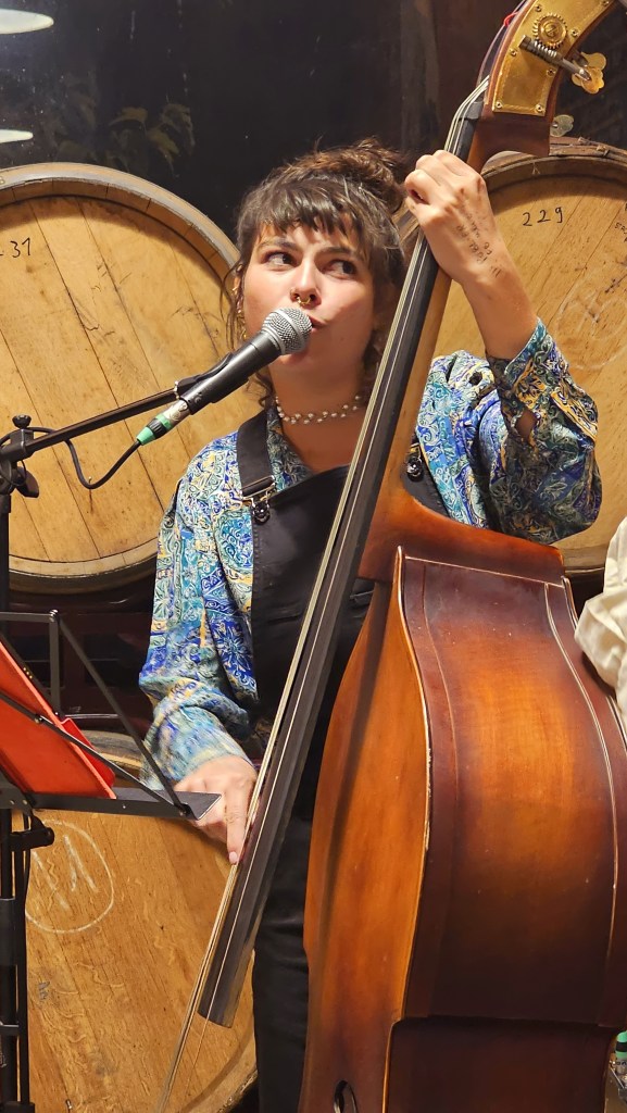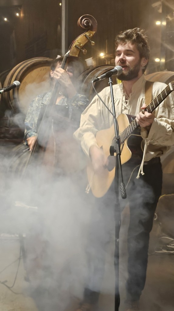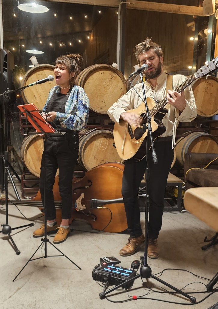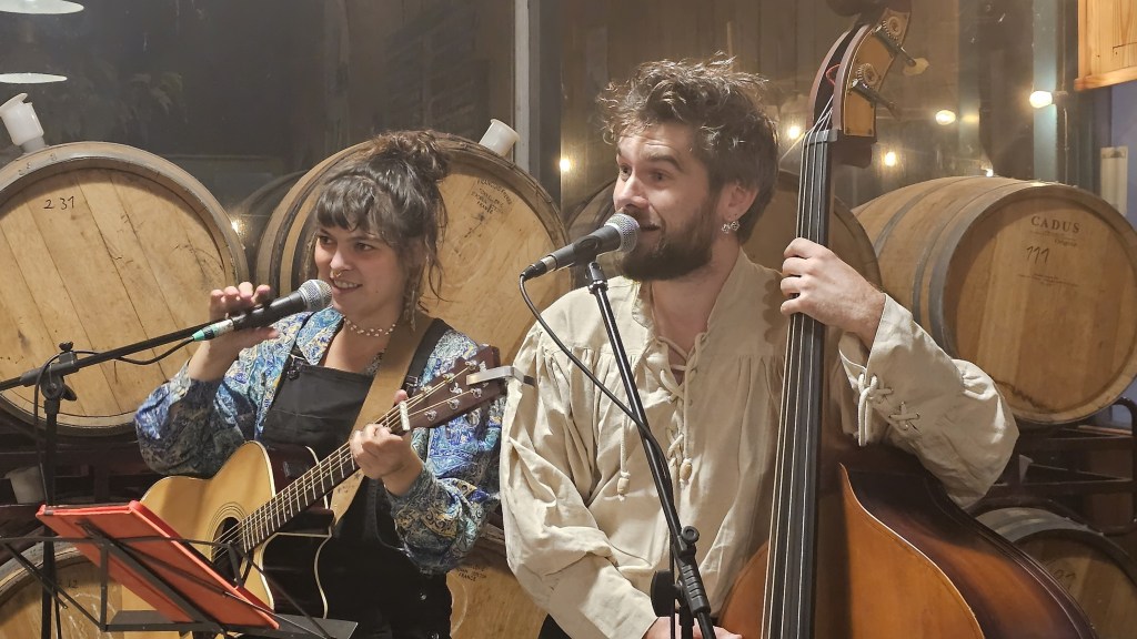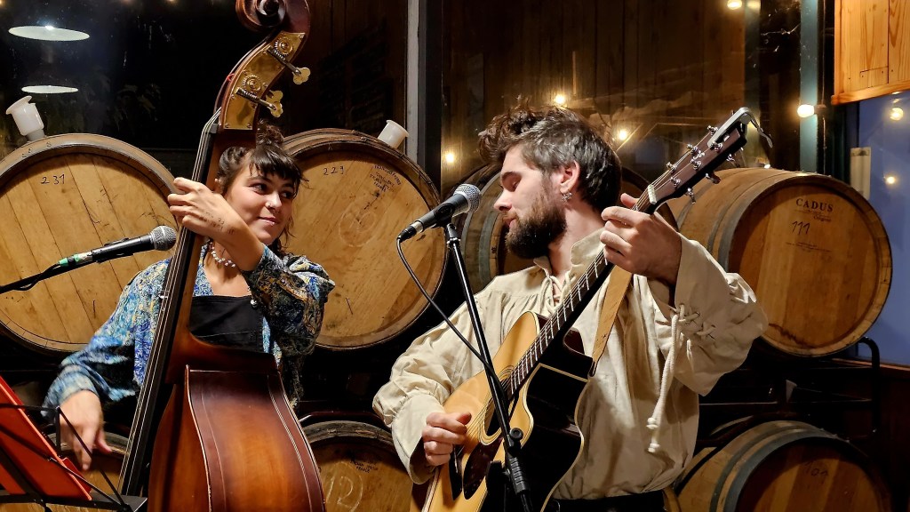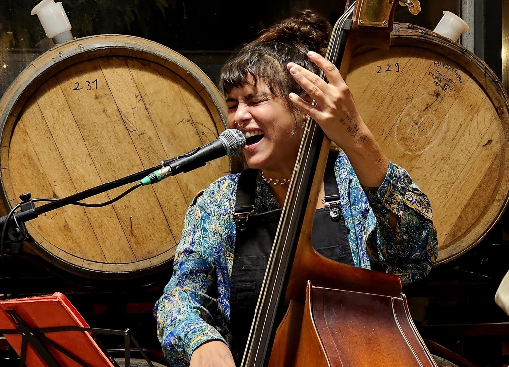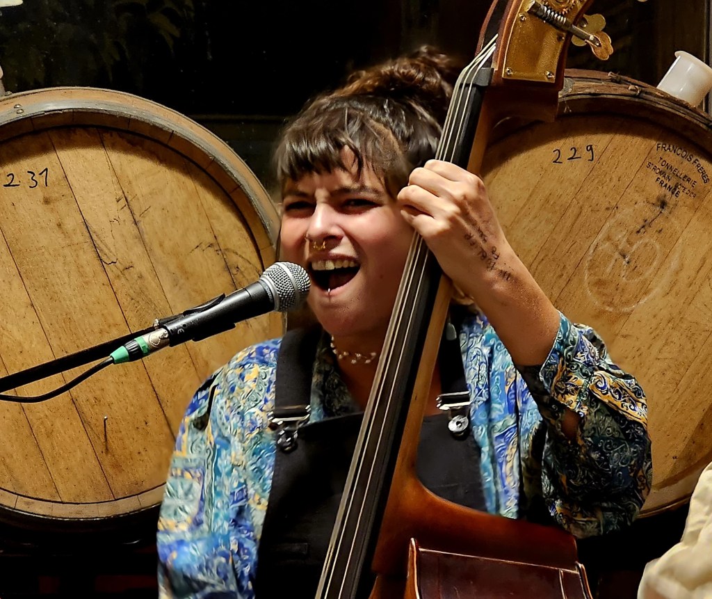 En mode contrebasse/chant pour elle et guitare/chant pour Léon (son « amoureux » comme elle me l’avait dit lors d’une très belle et très personnelle interview au printemps) le duo Brunelle et Léon nous fait voyager le temps d’un premier plutôt soft mais fort original.
