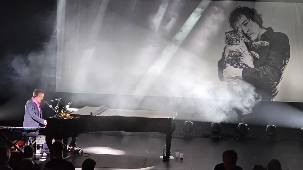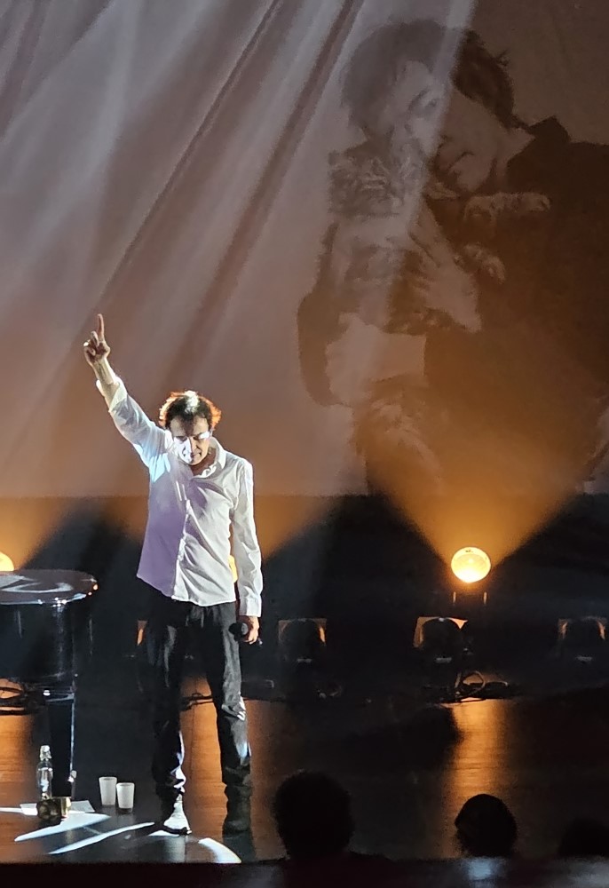 Car oui, c’est bien de Cali que l’on parle. Cali, le chanteur engagé, parfois énervant mais surtout Cali qui revisite ce soir en mode piano-voix son premier album L’Amour Parfait sorti il y a 20 ans. C’est ainsi qu’après l’ouverture sur le tandem Roberta/Sweetie et une incursion chez Springsteen puis U2 (With or whithout you) les titres de l’album aux 500.000 ventes défilent : C’est quand le bonheur, Elle m’a dit, Pensons à l’avenir, Dolorossa, Fais de moi ce que tu veux, Différent… On note au passage quelques notes d’Abba et des Pogues et on se régale. Il faut dire que l’homme est bien accompagné avec Steve NIEVE en magicien des claviers et de la voix sur certains titres.