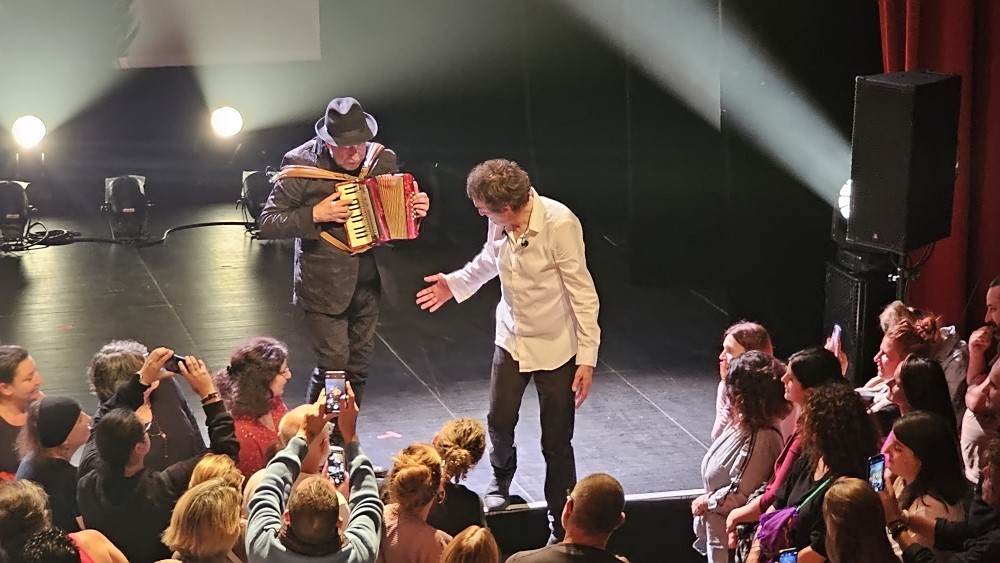 Un dernier coup de gueule – non le chanteur engagé n’est pas mort ! – en faveur de Guillaume Meurice et Paul Watson et c’est Pas La Guerre qui boucle ce concert de plus de 2h30 passées à une vitesse déconcertante et sans bla-bla. Sortie du duo via la fosse avec Steve NIEVE au petit accordéon et a capella.