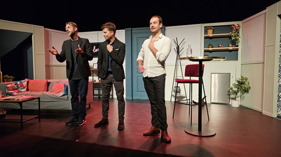 Bien entendu la distribution est différente. A Lyon, au Théâtre à l’Ouest pour être précis, c’est Alex BOULIN qui a l’honneur et la lourde charge de lancer la pièce. Plutôt bien d’ailleurs, en mode très interactif avec le public. Dans la foulée, c’est au tour de Brice LARRIEU dans LE rôle de la pièce, celui sur qui tout repose. Le Olivier DEVALS local, en somme. Difficile de faire aussi bien que lui mais comme son illustre collègue, ce sera au final une « mention très bien » : il régale en permanence. Le troisième homme est Lucas BARAN, très juste lui aussi surtout dans sa partie seul en scène.