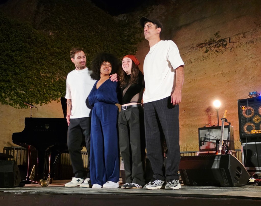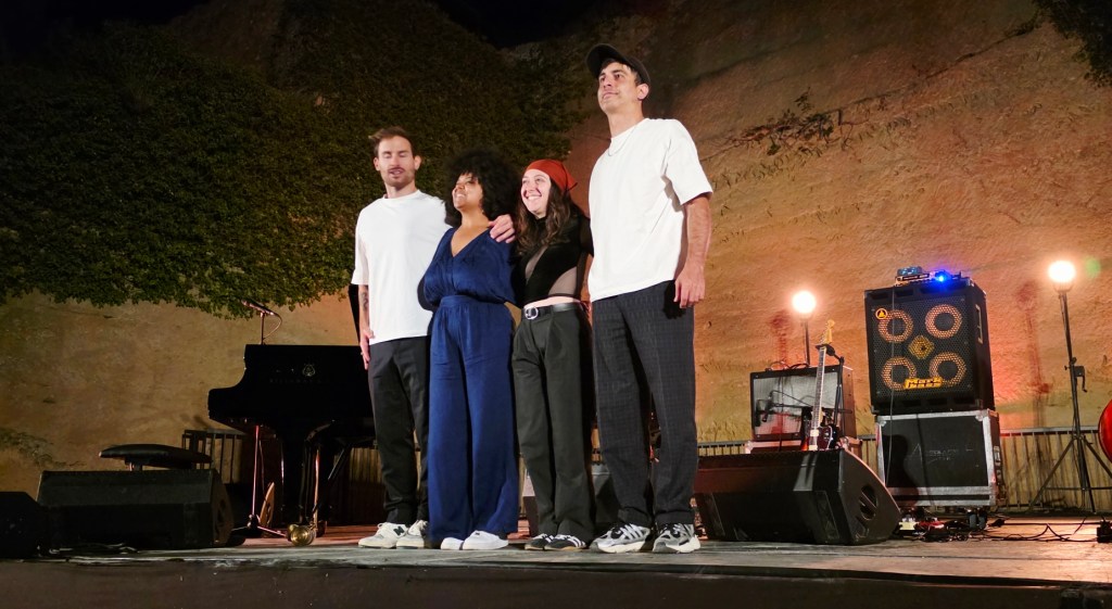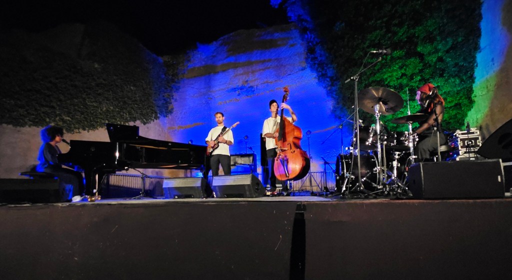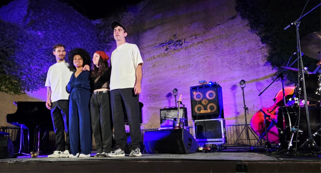 Comme la première fois, c’est l’étonnant Samuel F’hima qui accompagne Clélya Abraham à la contrebasse. Le quartet version 2025 est complété à la guitare par le non moins étonnant mais surtout créatif Kévin Lazakis (on a parfois l’impression que sa guitare chante) et par la diabolique Ananda Brandão à la batterie et à l’accompagnement vocal sur « Dear soul », éblouissante toute la soirée et exceptionnelle sur « Célébration ». « Intense et organique » nous avait dit la feuille de salle à propos de la franco-brésilienne : force est de reconnaître qu’il n’y a pas eu tromperie sur la marchandise !